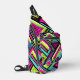 Brighten up your day with the Neon Geometric Retro Vibes Backpack. This design combines bold neon pink, electric green, cyan, and black in a series of dynamic geometric shapes. The sharp lines, triangles, and zigzag details give this backpack a playful, energetic feel reminiscent of retro 80s street art. Perfect for those who love bold, colourful designs, this backpack is a vibrant statement piece for everyday use or travel.