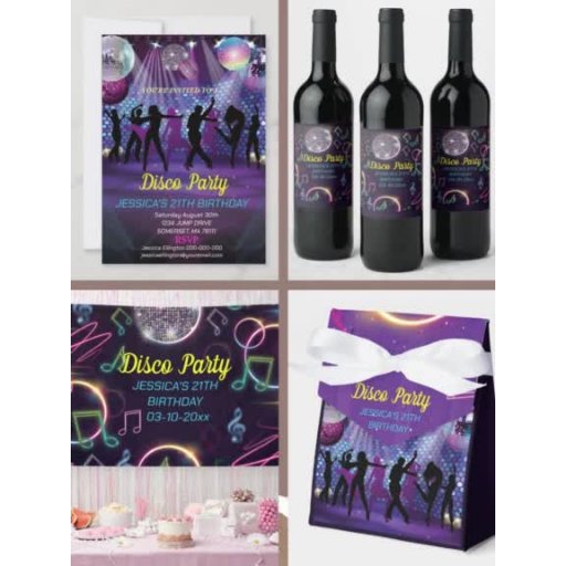 Neon Glow Disco Dance Birthday Party, Disco Birthday Party 70's Disco Ball Party Invitation. The Pink and Purple 21st Birthday Party Invitation is perfect for a modern Birthday Party. Customised matching products can be created by the Designer by request.