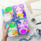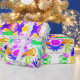 Beautiful neon look, paint splatter, party Wrapping Paper. Bright colours in shades of green, yellow, blue, purple, red, orange, turquoise and pink. All design elements are printed.