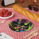 Neon Glow Paint Splatter Birthday Party Plates. Customise with any text. Matching items are available.