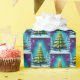 Neon Glow Pine Tree with Star in Dreamy Snowy Fore Wrapping Paper