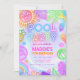 Dive into the ultimate party experience with our Pool Party Birthday Invitation! This design captures all the excitement of a pool party, featuring a neon array of summer graphics including a glowing sun, palm tree, pool float, flamingo, ice cream, and more. Surrounded by heart and star accents, this invitation bursts with vibrant energy and fun. Make a splash and let the neon vibes light up your celebration!