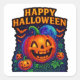 Neon Glow Pumpkin “Happy Halloween” Square Sticker