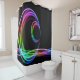 Multi-colour neon glow sticks wrapped in a circle on a black background shower curtain. There are other matching bath accessories.