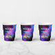 Trendy neon glow in the dark purple pink blue neo vibrant colourful Sweet Sixteen party paper cups.