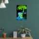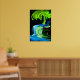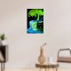 Neon glow tree and waterfall abstract poster