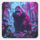 A digital rendering of a large male gorilla in a rainforest with stylised neon lighting.