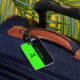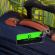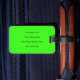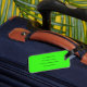 Monogrammed initial and also personal details like name, address, phone number and email all of which you can edit. Designed with attractive solid neon green colour background, you can change the colour if you wish. Cool travel gift idea for him or her.