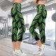 Neon green leaves - fractal art, capri leggings