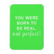 Neon Green Quote in white; "You were born to be real, not perfect!" Inspirational quote for all.