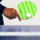 Personalised neon green stripe pattern ping pong paddle for table tennis. Modern sports game gift idea for tabletennis girls. Cute girly striped design personalised with name. Custom background colour. Fun game and sports accesories.