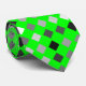This striking neon green tie features a black, white and shades of grey diamond pattern.