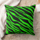 Bright neon green zebra stripes cover this awesome square throw pillow.
