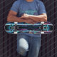 "Neon Hacker: Cyberpunk Cityscape Skateboard