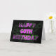 A glaring Happy 60th Birthday card set against a black background makes this card special. Just add a message or image inside to customise/personalise and give to a family member, friend or loved one.