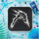 A neon high diver in mid-air demonstrates a dynamic and graceful movement, surrounded by radiant bursts of light on a dark background