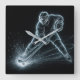 Neon Hockey Player On Ice Square Wall Clock