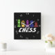 Neon Lights Chess Pieces Chess King Square Wall Clock