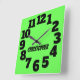 Neon Lime Green Big Numbers Square Wall Clock