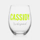 Neon Lime Yellow 3D Elegant Name Bridesmaid Stemless Wine Glass