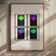This electrifying artwork features a striking set of neon-hued lotus flowers glowing against a deep black background. The vibrant greens, blues, and purples radiate with energy, giving a modern, psychedelic twist to the serene lotus motif. Each flower seems to pulse with light, creating a dynamic contrast between nature and neon. Perfect for adding an edgy, futuristic vibe to any space, this art piece is sure to captivate and energise.