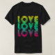 Black t-shirt with neon letters, this cool 80's t-shirt is fun and cool! Bright "fluorescent" style LOVE in a rainbow of ultra yellow, teal and hot pink pop against a high contrast black background.