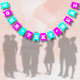 Neon Magenta and Turquoise Solid Colour Custom Bunting Flags. Customise this product with your own text. Perfect for any party or event.