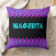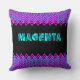 Turn on the colour. This throw pillow pairs vivid magenta-and-aqua chevron stripes with a deep black field, framing bold aqua lettering with a subtle tropical leaf texture. The high-contrast palette delivers instant energy and reads clearly from across the room, making it a striking focal piece on a sofa, bed, or studio chair. Style it with monochrome basics for a graphic pop or layer it with other neon accents for a full retro vibe. Printed in high resolution so edges stay crisp and colours stay saturated, this cushion brings playful, modern attitude to apartments, dorms, game rooms, and creative workspaces.