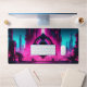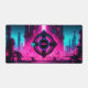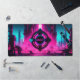 Neon Magenta Cyan Cyberpunk City Obey Gamer Desk Mat