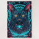 This mesmerizing jigsaw puzzle features a majestic black cat illuminated with glowing neon mandala patterns. The intricate, symmetrical designs flow across its fur in vibrant hues of electric blue, fiery orange, and magenta. The cat's piercing turquoise eyes seem to glow with mystic energy, drawing you into its enigmatic gaze. Set against a deep black background, the vivid lines and radiant details create a dazzling contrast, making each puzzle piece a work of art. A stunning blend of fantasy and elegance, perfect for those who love cats, color, and cosmic mystery.