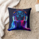 Neon Music Meditation – Woman with Headphones Art Cushion