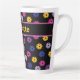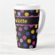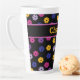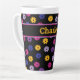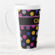 Neon pink, yellow and purple on black pickleball pattern, custom initial. Great as a gift. Latte Mug with custom name on the side