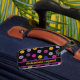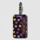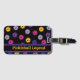 Neon pink, yellow and purple on black pickleball pattern, custom text Luggage Tag . Perfect as a gift for pickleball player. Customisable text on the side