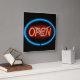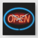 Neon open sign. square wall clock