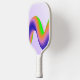 Neon orange, blue and green waves on purple pickleball paddle