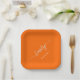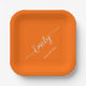 Paper Plate with elegant script and a solid bright orange (ff6600) hue. Brilliant, eye-catching colour that make you think of the 1980s. A great addition to any retro-themed event. Enhance your name with stylish swashes. Simply place it between the symbols provided in the personalisation section.