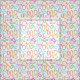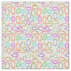 This fabric has a geometric design of groups of three ovals in neon colours scattered about on a field of white.