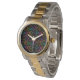 This men's watch has a geometric design of groups of three ovals in neon colours scattered about on a field of black.