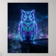 Neon Owl Midnight Skyline Poster