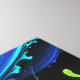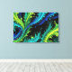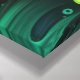 Swirling patterns of vivid green and blue resemble dynamic waves or splashes set against a deep black background.