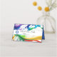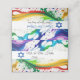 Cool neon 3d look paint splatter place card with bright colours of green, purple, red, blue, orange, yellow. Blue Star of David.