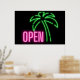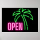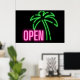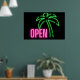 Neon Palm Tree Green & Pink Open Sign Poster