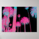 Neon Palm Trees Miami Beach Art deco art print poster by Artist Rick Short. Neon Palm Trees glow at night in neon colours. Great poster to add some colour to any room.