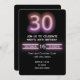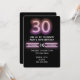 Glowing pink neon numbers on a black background for a 30th birthday party