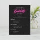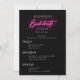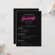 Neon Pink Modern Bachelorette Weekend Itinerary Card. This modern invitation includes sections for a lot of information including location, price and schedule of events.