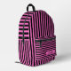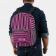 Neon Pink and Black Vintage Striped Personalised Name Printed Backpack