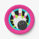 Neon Pink Bowling Pin Paper Plates - Dark Centre