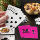 Neon pink custom monogrammed playing cards. Stylish vintage typography template for name and initial. Unique monogrammed gift idea for bridge or poker players.