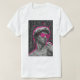 Graphic Contrast: The black-and-white sketch style of the statue creates a striking visual contrast against the pop of neon pink and the crisp white fabric of the shirt.