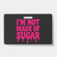 Make your presence impossible to ignore. This black badge with neon pink dripping text boldly states “I’M NOT MADE OF SUGAR” — turning any uniform or lanyard into a personal manifesto. Whether you're leading a workshop, managing a pride booth, staffing a creative event, or simply refusing to play small — this badge does the talking before you do.